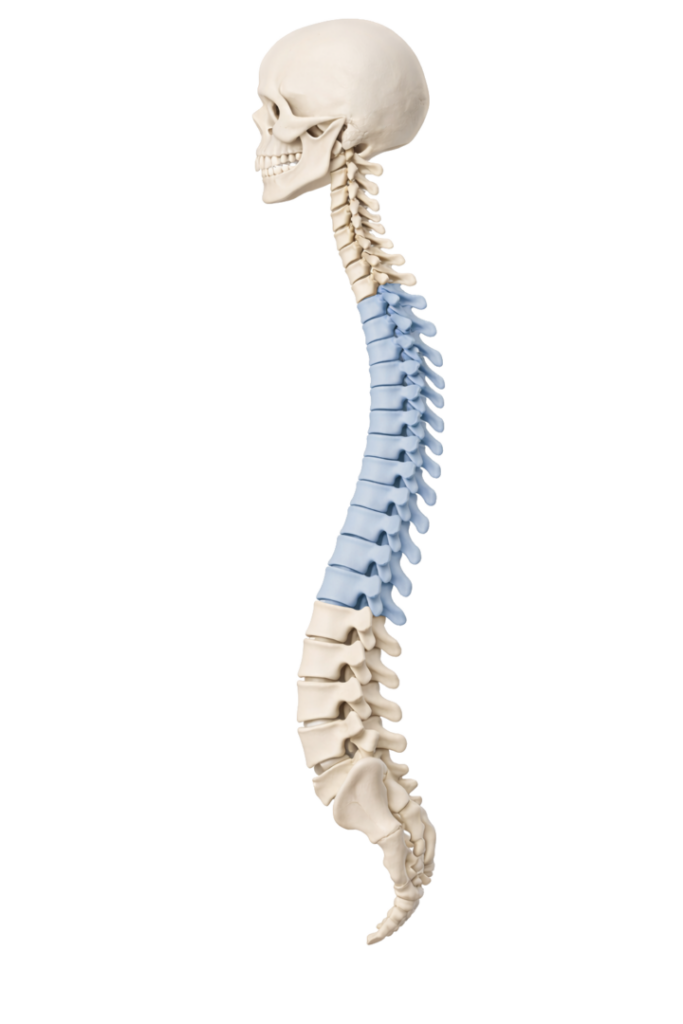 Die BWS bildet den mittigen Abschnitt der Wirbelsäule und besteht aus zwölf Wirbeln, die mit den Rippen verbunden sind. Zusammen formen sie den Brustkorb, dein persönliches Schutzschild für Herz und Lunge. Die natürliche Krümmung der BWS (die sogenannte Kyphose) sorgt dafür, dass dein Oberkörper gleichzeitig stabil bleibt und flexibel ist.